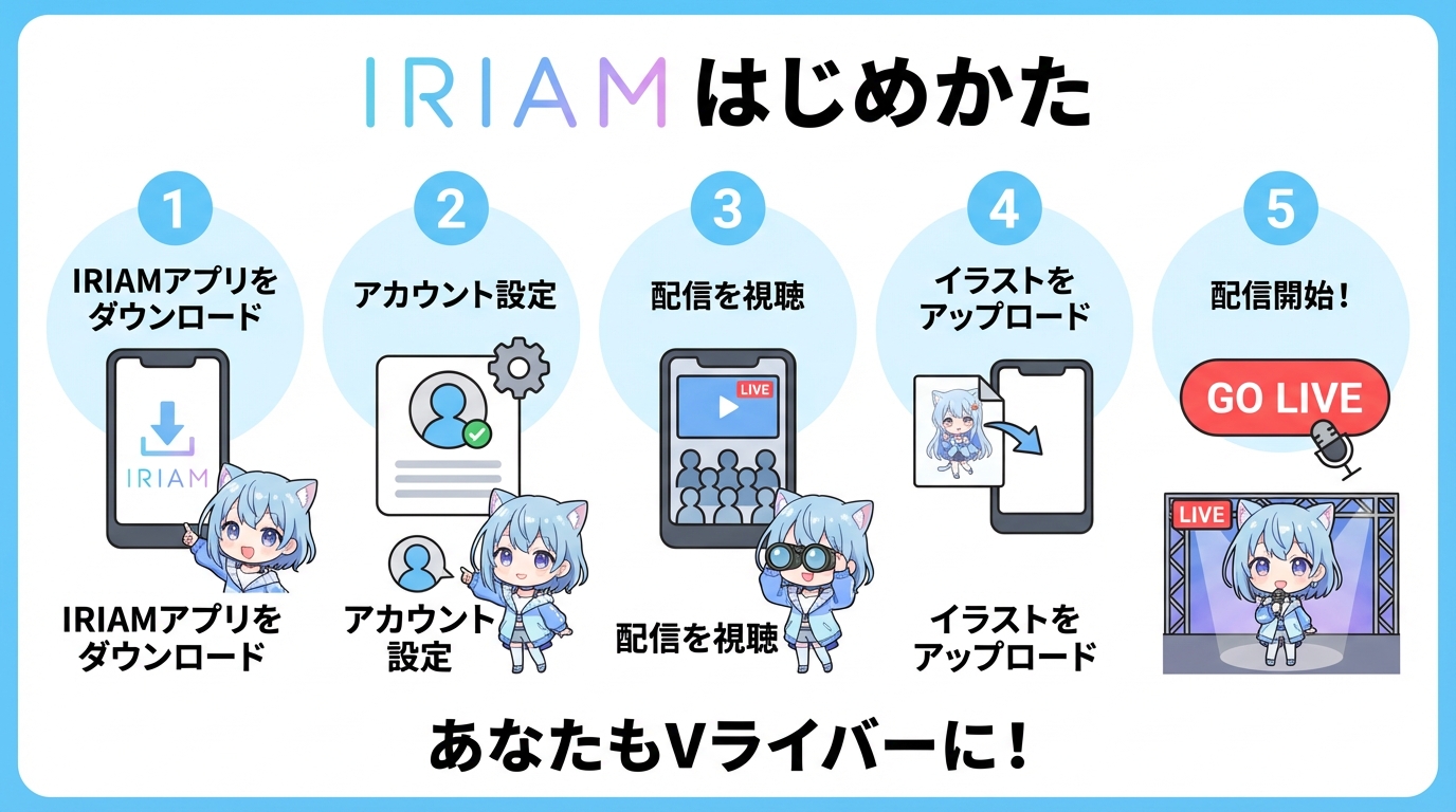 「やってみたい」と思ったあなたのために、IRIAMの始め方を5ステップにまとめました。